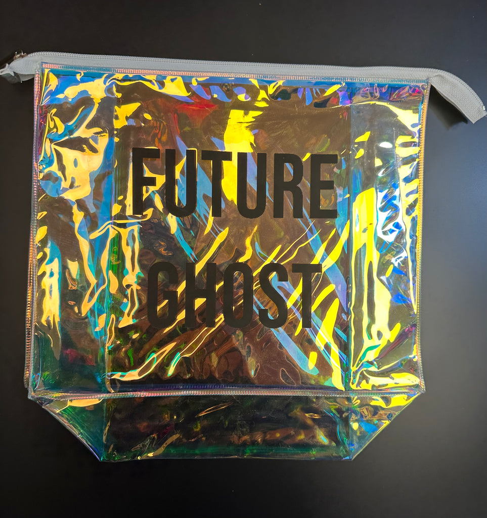Approximately 12 inches long, 9 inches high and 4 inches wide, these project bags are made from fun holographic vinyl, with a zipper close. Perfect for small to medium skein projects.