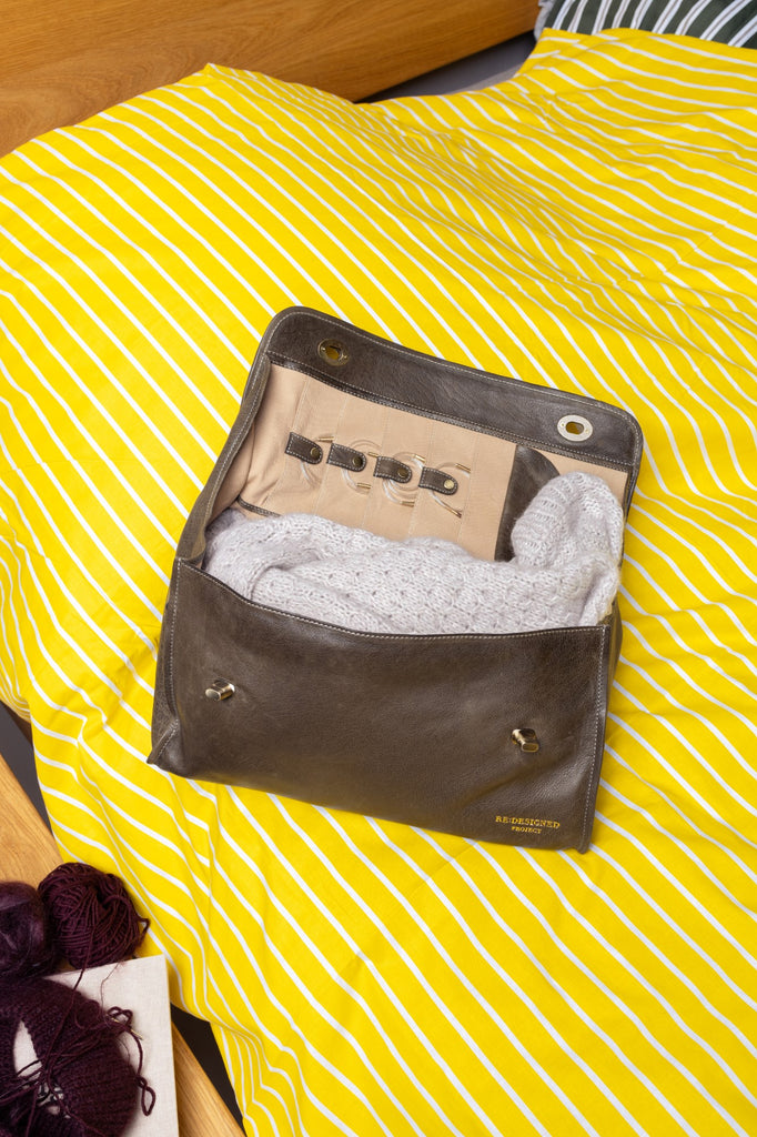 The Project 73 bag is thoughtfully designed for knitters who value organization and style. The lid features a convenient section to securely store your circular needles, ensuring they’re always within reach. Inside, the spacious main compartment provides ample room for multiple knitting projects, yarns, and accessories. Whether you're at home or on the go, Project 73 keeps your knitting essentials tidy and easily accessible.
