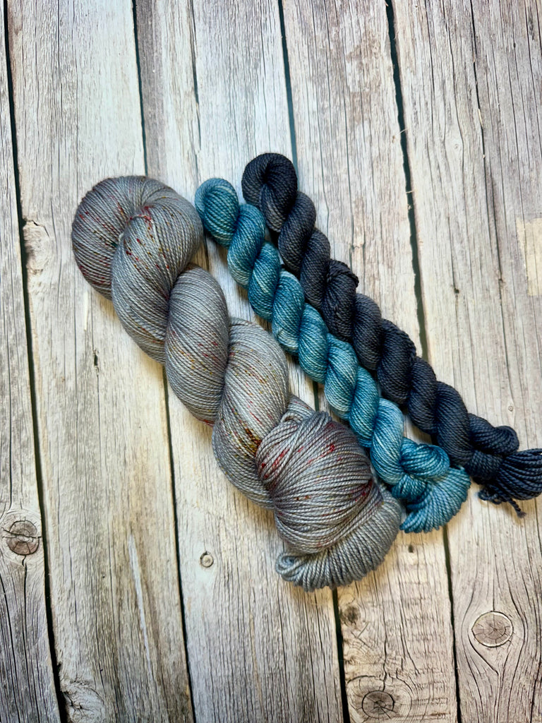 Includes two 50g skeins of DK 100% Superwash Merino at 123 yards each and the shown laser engraved hat tag.